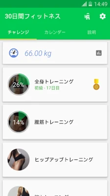 「30日間フィットネスチャレンジ」は、あなたのトレーニング体験を最大限に引き出すための豊富な機能を搭載しています。進捗状況は自動で記録されるため、モチベーションを維持しやすく、毎日のトレーニング通知で忘れずに運動を継続できます。全てのメニューには、視覚的に分かりやすいビデオガイドが付随しており、正しいフォームで安全にエクササイズを行えます。さらに、腹筋や全身の強化に特化した30日間チャレンジもご用意。各ワークアウトは初心者からプロフェッショナルまで対応する3つのレベルに分かれており、ご自身の体力レベルに合わせて最適なプログラムを選択可能です。