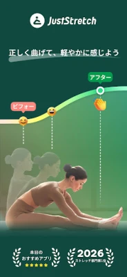JustStretch | フレックス モビリティで、毎日のストレッチを習慣にしましょう。年齢や体力レベルを問わず、柔軟性を高め、自然な可動域を維持できます。モーニングからデスクブレイク、全身フローまで、多様なルーティンとカスタムワークアウト、マルチメディアガイドで健康的な毎日をサポートします。