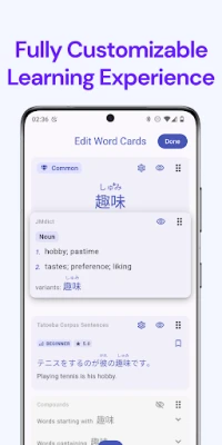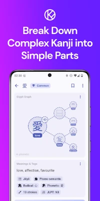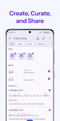 インタラクティブな漢字・日本語辞書で、学習効率を最大化。13,000字以上の漢字、180,000語以上の単語、そして無制限の文章マイニングで、日本語学習を次のレベルへ。
