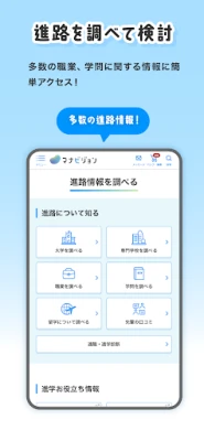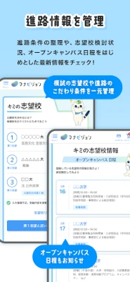 約270種の職業と72分野の学問を網羅した詳細なデータは、あなたの興味を広げるきっかけに。さらに、理想の学び舎を見つけるための情報も充実しています。気になる学校のオープンキャンパス予約や資料請求もアプリ内で完結し、志望校を登録すれば、開催予定や入試変更点といった最新情報がリアルタイムで届きます。「こだわり問診」や「タイプ診断」といったユニークな機能を使えば、自身の個性や希望条件に基づいた最適な進学先を効率的に見つけ出すことができるでしょう。
