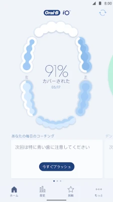 ブラッシング終了後には、磨いた時間や範囲の正確なスコアが表示され、一目で自身のパフォーマンスを把握できます。また、Oral-Bアプリはあなたのブラッシング癖を学習し、一人ひとりに最適化されたパーソナルコーチングを提供。磨き残しが多い箇所や、圧力が強すぎる部分をリアルタイムで指摘し、効率的な改善を促します。週ごと、月ごと、年ごとの詳細なサマリーで、オーラルケアの進捗を簡単に追跡し、健康な口腔環境を維持するためのモチベーションを高めることができます。Oral-Bアプリは、Oral-B iOシリーズ、GENIUS、スマートシリーズの電動歯ブラシと接続して、かつてない清潔感と自信に満ちた笑顔を手に入れるための究極のパートナーです。