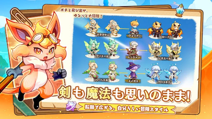 神秘と広大さに満ちたファンタジー世界が、あなたを待っています。頼れる相棒「ポチ」と共に、未知の領域へと足を踏み入れ、忘れがたい冒険の物語を紡ぎましょう。ウォリアー、メイガス、レンジャーの三つの個性的なクラスから一つを選び、あなた自身のプレイスタイルを確立してください。それぞれのクラスは独自のスキルと成長経路を持ち、無数の戦術とカスタマイズの可能性を秘めています。どんな困難も、ポチは常にあなたの側にいます。