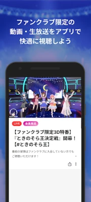 「ときのそら公式ファンクラブ」の魅力が詰まった公式アプリ。限定の生放送や動画、最新ニュース、メンバーブログなど、ここでしか見られない特別なコンテンツをいつでもお楽しみいただけます。ファンとの距離を縮める、充実した体験を提供します。