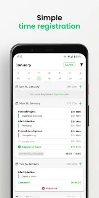 複雑で時間のかかるシステムにお悩みですか?Visual Registrationは、時間管理、プロジェクト管理、リソース管理、そして休暇管理を一つのツールで提供します。全てが自動化され、驚くほどシンプルな操作性を実現。業務を効率化し、スマートな管理を始めましょう。